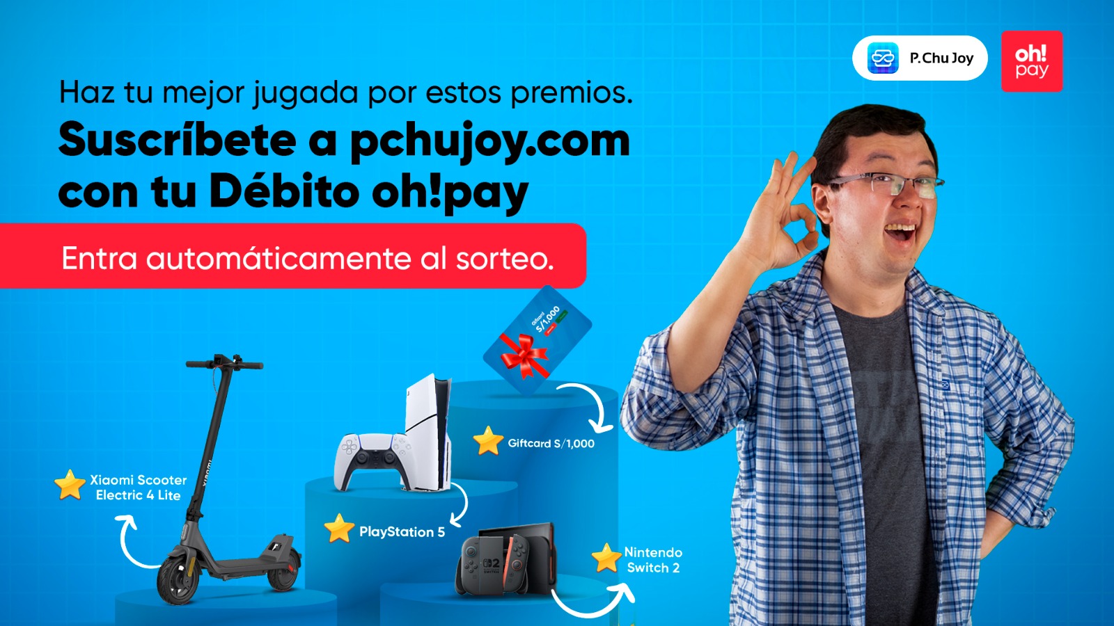 Paga tu suscripción en pchujoy.com con oh!pay y entra automáticamente a un sorteo con premios épicos